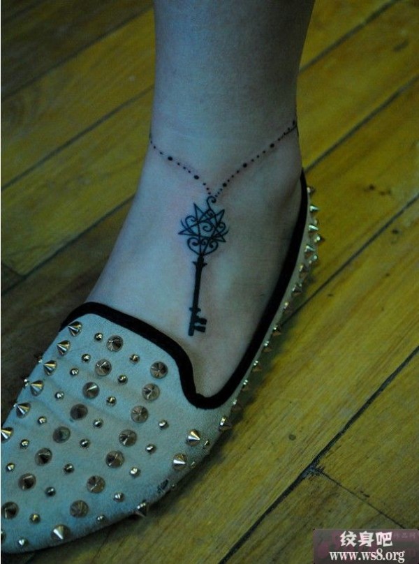 钥匙脚链脚踝纹身图片图案_脚部纹身图案大全_纹身图吧