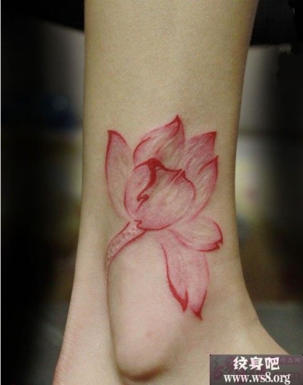 脚踝盛开荷花时尚纹身图案_脚部纹身图案大全_纹身图吧