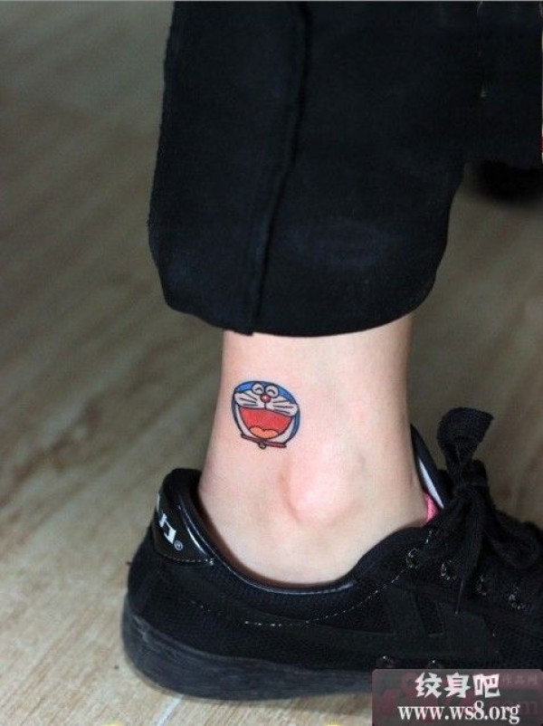 脚踝可爱机器猫头像纹身图案_脚部纹身图案大全_纹身图吧