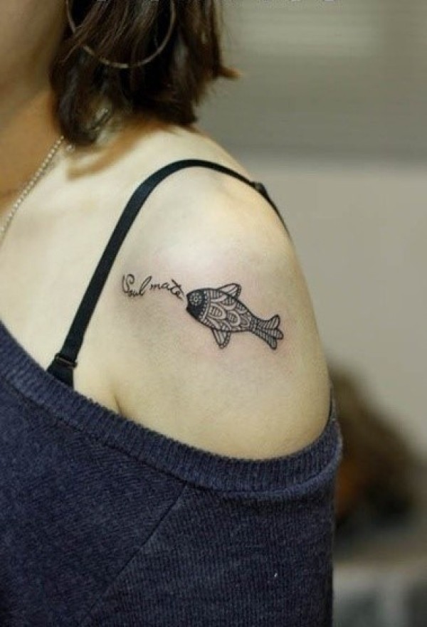 女性肩部鱼刺青_肩部纹身图案大全_纹身图吧