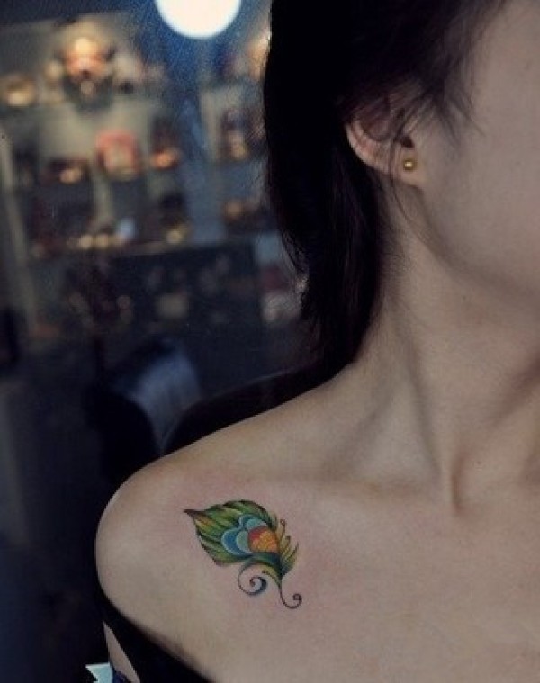 女性肩部彩色刺青_肩部纹身图案大全_纹身图吧