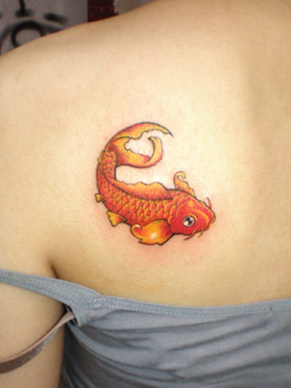 女性肩部小鱼刺青_肩部纹身图案大全_纹身图吧