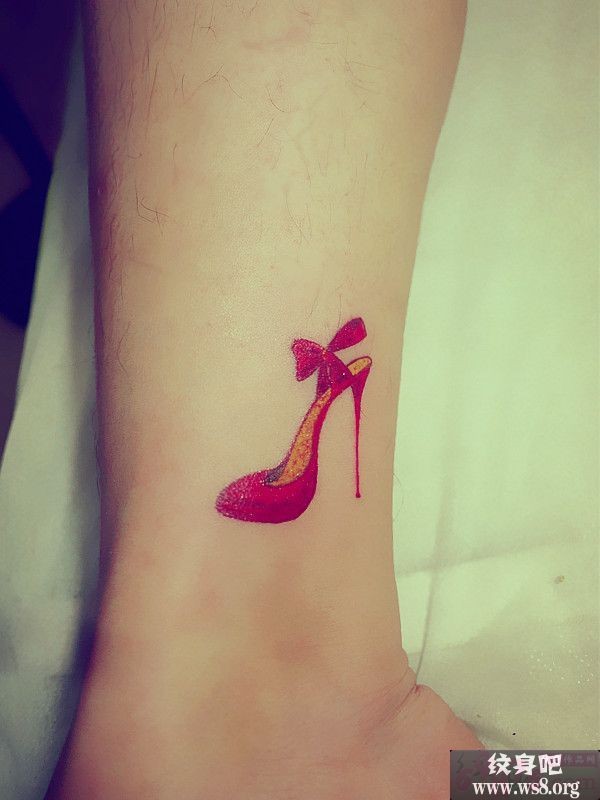 时尚高跟鞋脚部纹身图案_脚部纹身图案大全_纹身图吧
