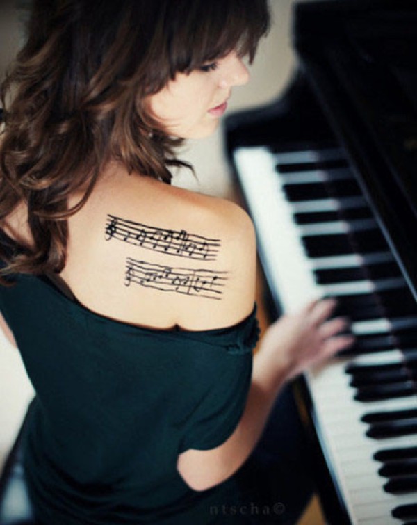 女性肩部音符刺青_肩部纹身图案大全_纹身图吧