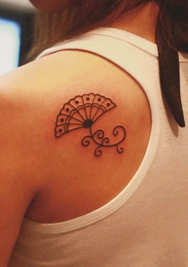 女性肩部扇型刺青_肩部纹身图案大全_纹身图吧