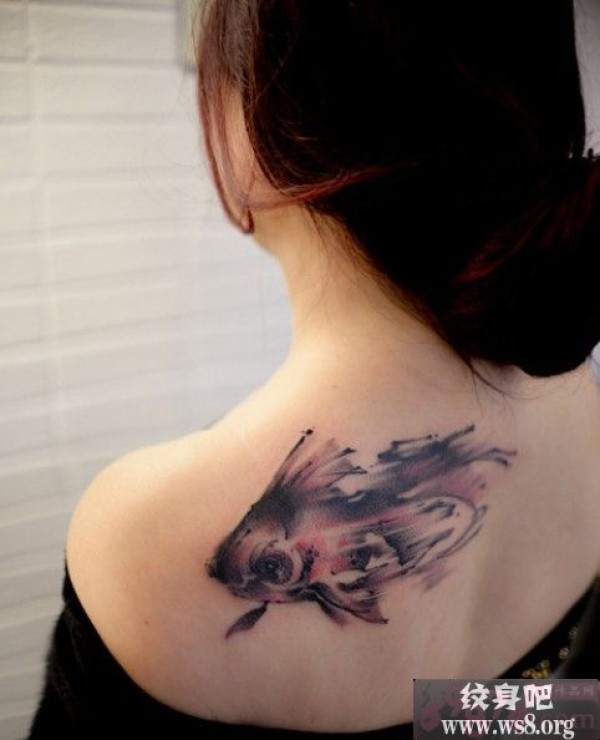 肩胛唯美水墨画小鱼刺青图案_肩部纹身图案大全_纹身图吧