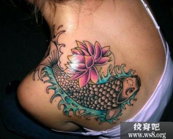肩部锦鲤纹身女人图案_肩部纹身图案大全_纹身图吧
