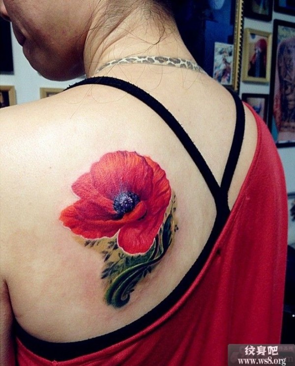 后肩美丽罂粟花纹身图案图案_肩部纹身图案大全_纹身图吧