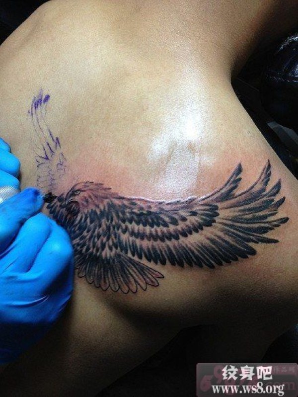 男人后肩老鹰纹身操作现场图案_肩部纹身图案大全_纹身图吧