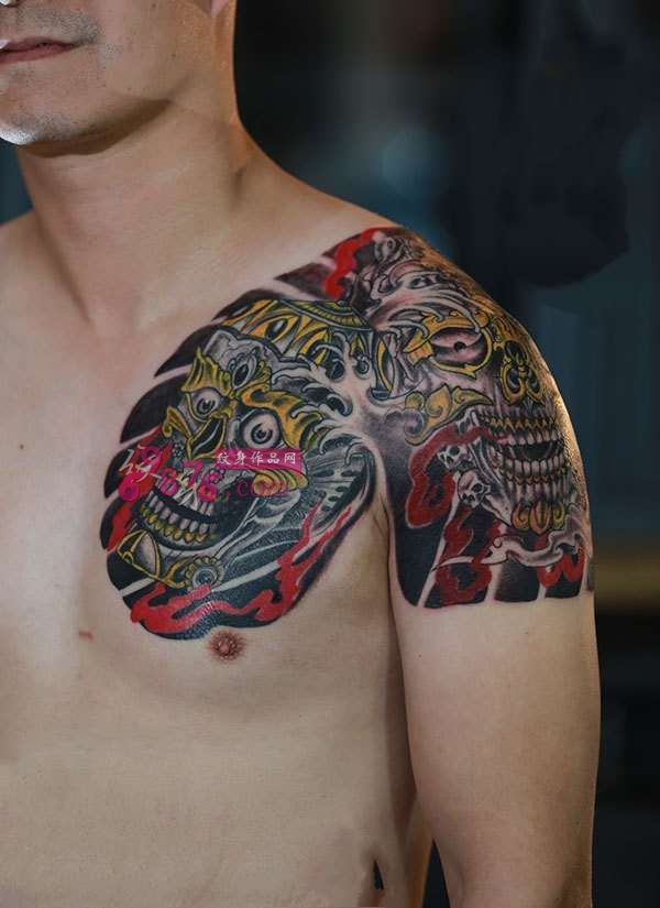 男生霸气披肩骷髅纹身_肩部纹身图案大全_纹身图吧