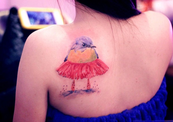 肩部创意穿蓬蓬裙小鸟纹身_肩部纹身图案大全_纹身图吧