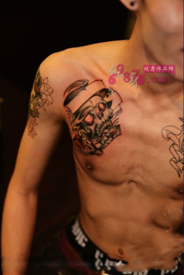 男人肩部复古骷髅纹身_肩部纹身图案大全_纹身图吧