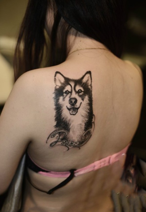 创意狗狗肖像肩部纹身_肩部纹身图案大全_纹身图吧