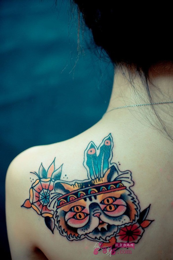 香肩创意面具猫头鹰纹身_肩部纹身图案大全_纹身图吧