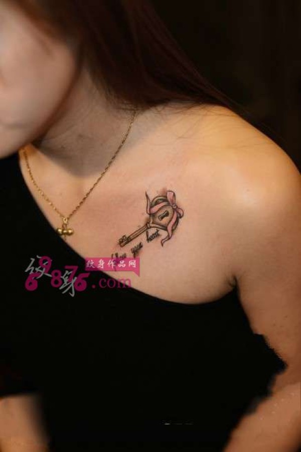 美女香肩钥匙时尚纹身_肩部纹身图案大全_纹身图吧