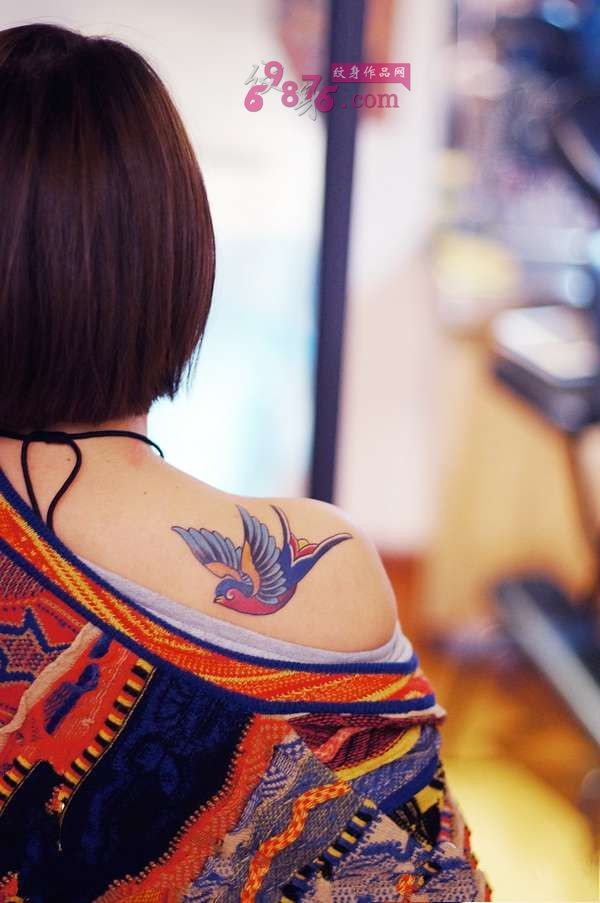 创意美女香肩燕子纹身_肩部纹身图案大全_纹身图吧