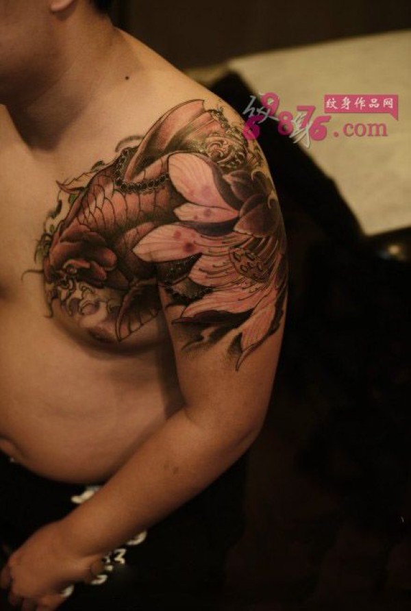 披肩传统鲤鱼莲花纹身_肩部纹身图案大全_纹身图吧