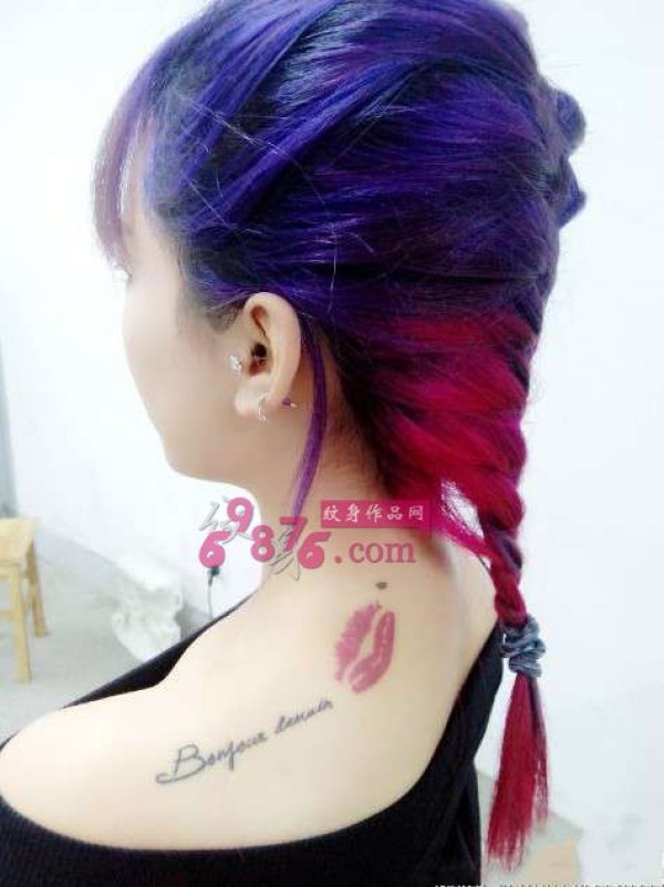 美女香肩红唇英文纹身_肩部纹身图案大全_纹身图吧