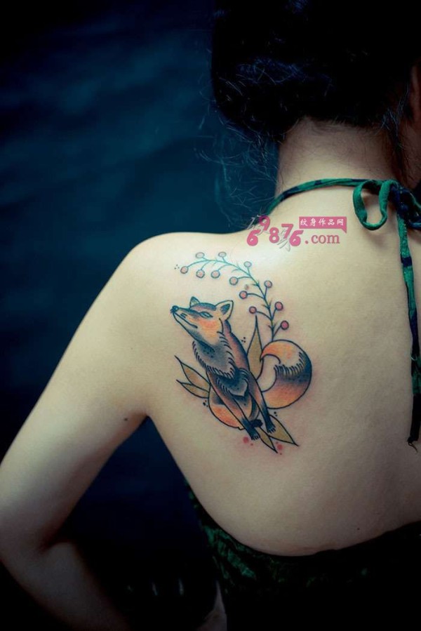 性感美女香肩狐狸纹身_肩部纹身图案大全_纹身图吧