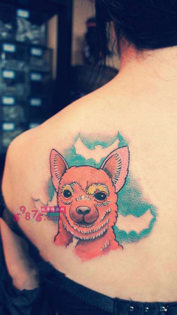 可爱彩色狗狗香肩纹身_肩部纹身图案大全_纹身图吧