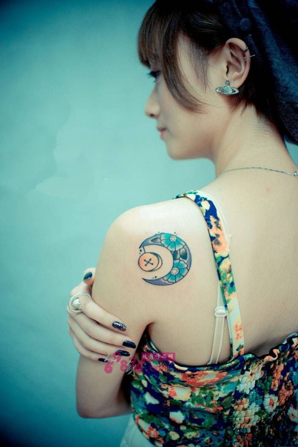 美女香肩月亮图腾纹身_肩部纹身图案大全_纹身图吧