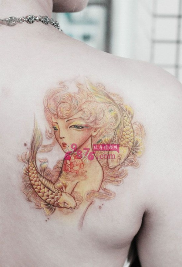 唯美双鱼座后肩纹身_肩部纹身图案大全_纹身图吧