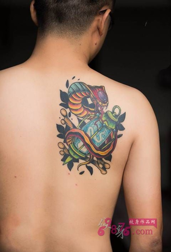 欧美蛇与路灯肩部纹身_肩部纹身图案大全_纹身图吧