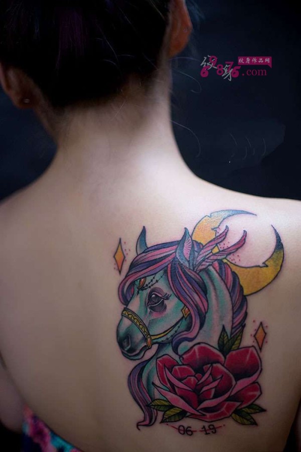 美女香肩可爱花小马纹身_肩部纹身图案大全_纹身图吧