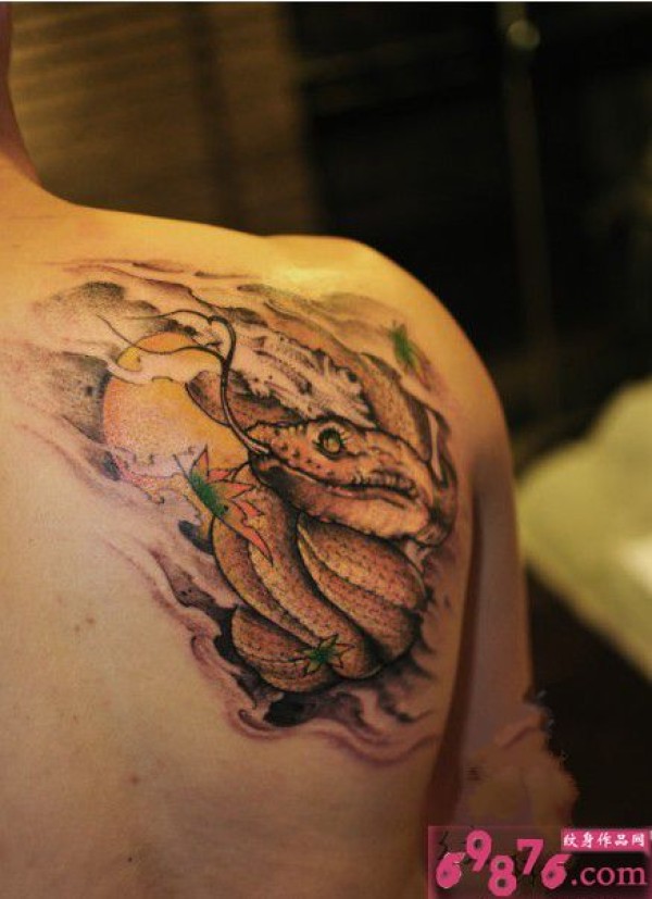 传统蟒蛇肩部纹身_肩部纹身图案大全_纹身图吧