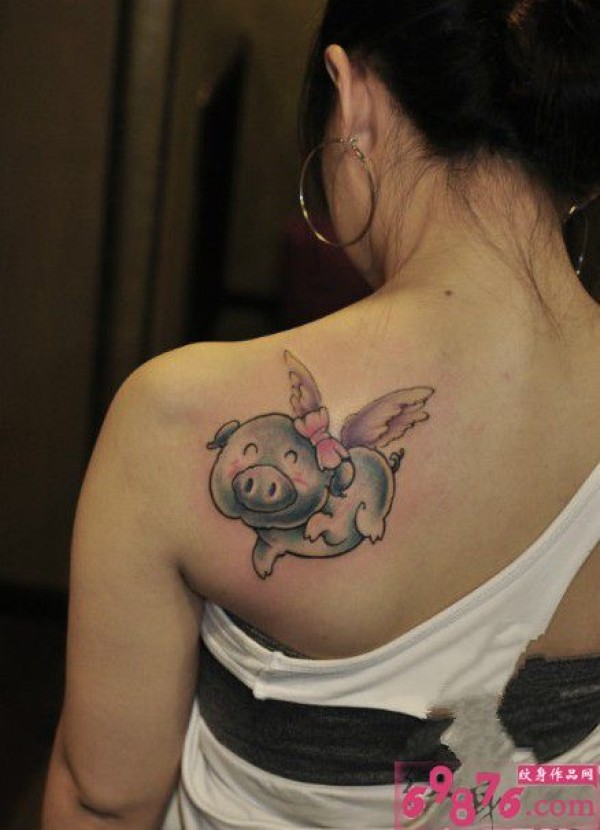 可爱小飞猪后肩纹身_肩部纹身图案大全_纹身图吧