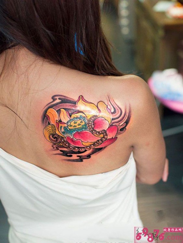 传统莲花后肩纹身_肩部纹身图案大全_纹身图吧