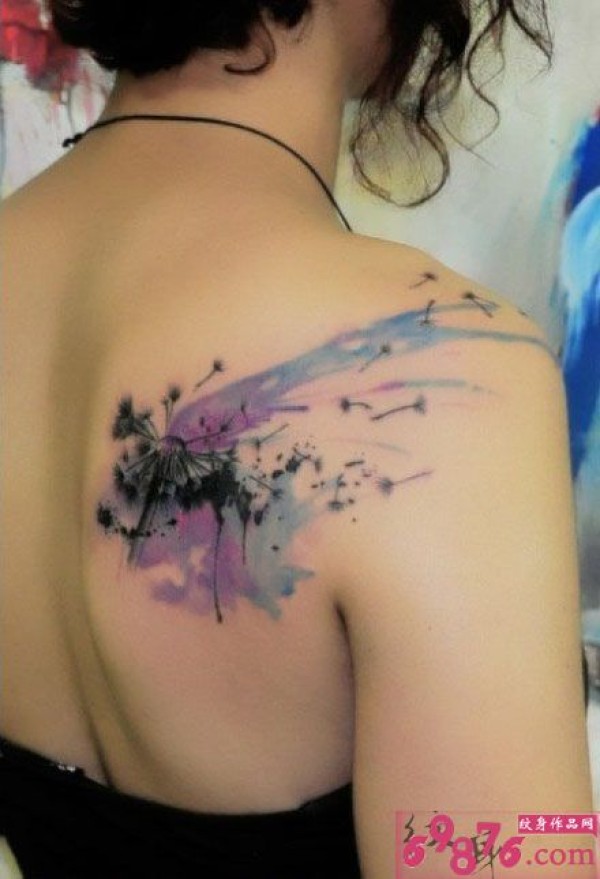 炫彩蒲公英肩部纹身_肩部纹身图案大全_纹身图吧