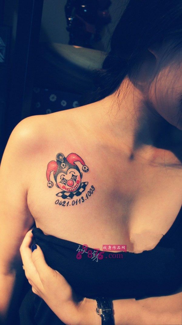 辣妈香肩可爱小丑宝宝纹身_肩部纹身图案大全_纹身图吧
