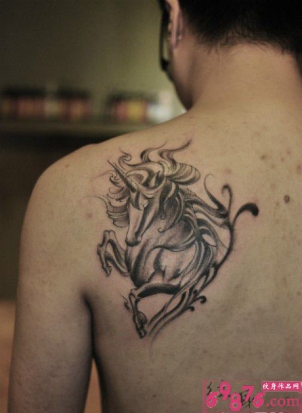 欧美风飘逸的独角兽纹身_肩部纹身图案大全_纹身图吧