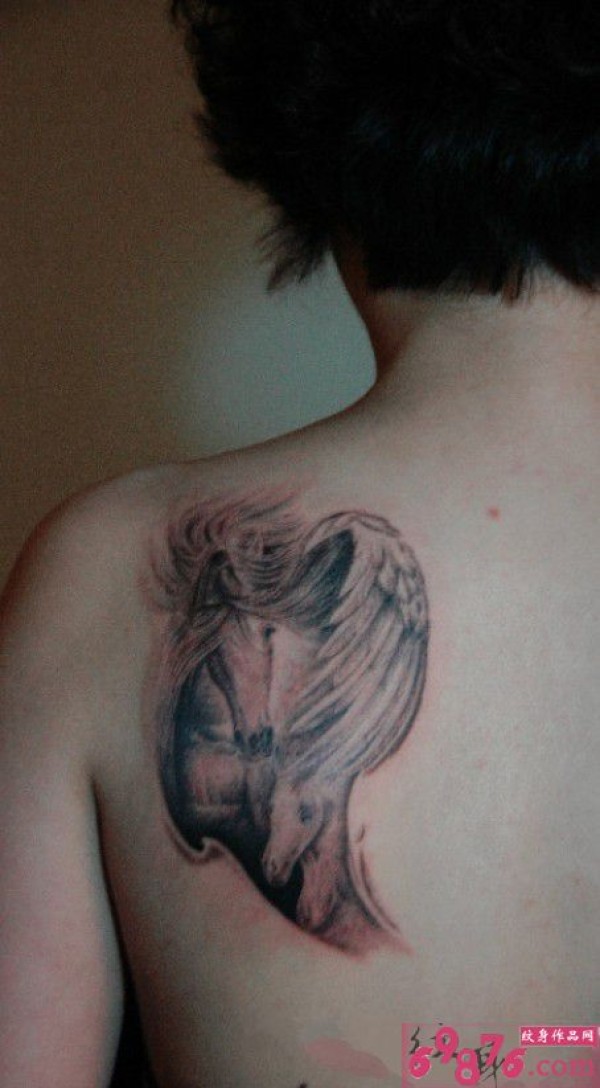 水墨风马儿唯美肩部纹身_肩部纹身图案大全_纹身图吧