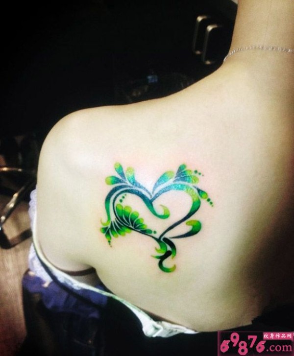创意碧绿海浪心肩部纹身_肩部纹身图案大全_纹身图吧