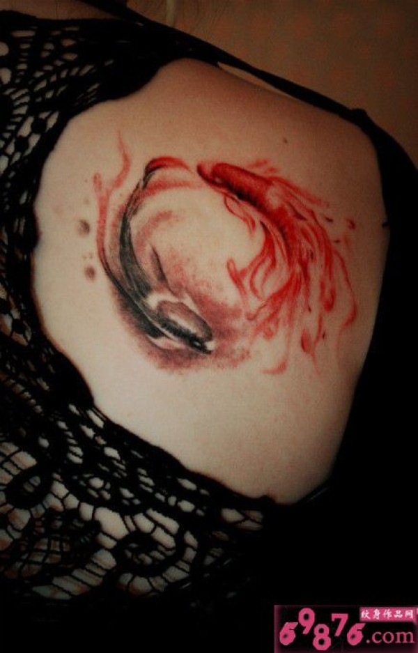 唯美功德双鱼肩部纹身_肩部纹身图案大全_纹身图吧