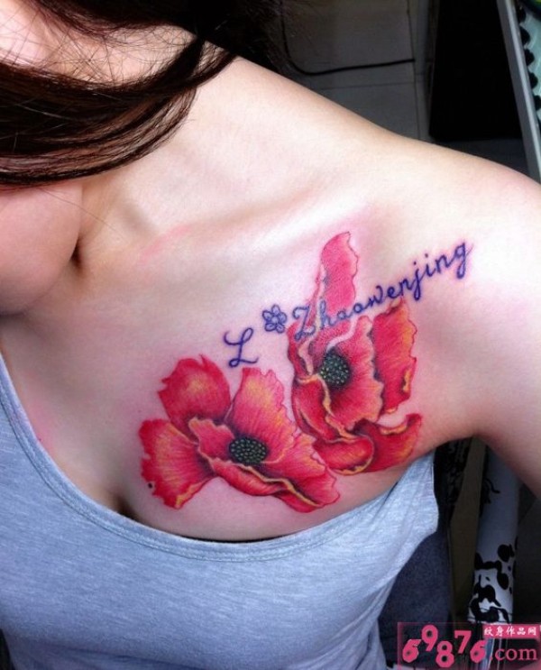 美女肩部罂粟花纹身_肩部纹身图案大全_纹身图吧