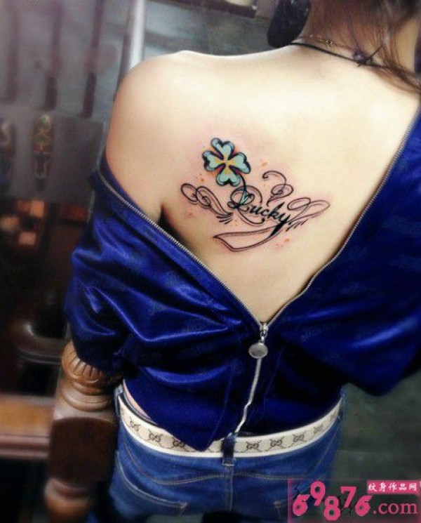女生后肩清新四叶草英文刺青_肩部纹身图案大全_纹身图吧
