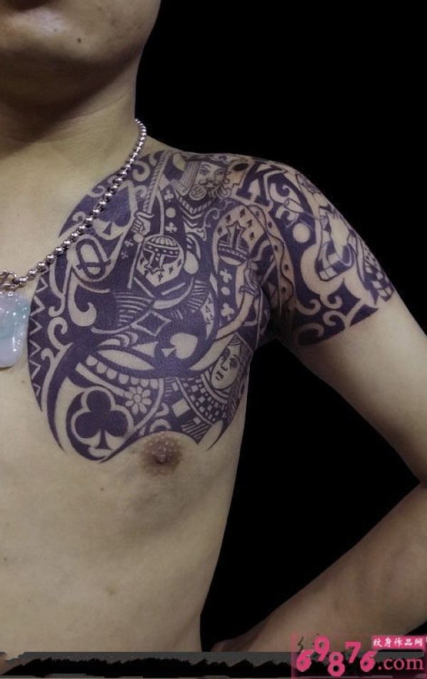 肩部霸气扑克K图腾纹身_肩部纹身图案大全_纹身图吧