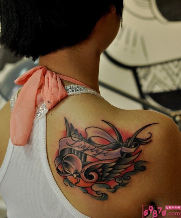 彩色燕子肩部女生纹身_肩部纹身图案大全_纹身图吧