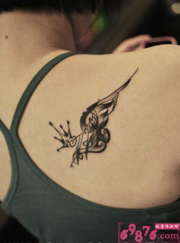 小清新皇冠翅膀肩部纹身_肩部纹身图案大全_纹身图吧