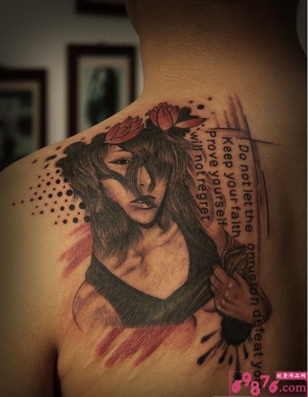 后肩欧美纹身女头像_肩部纹身图案大全_纹身图吧