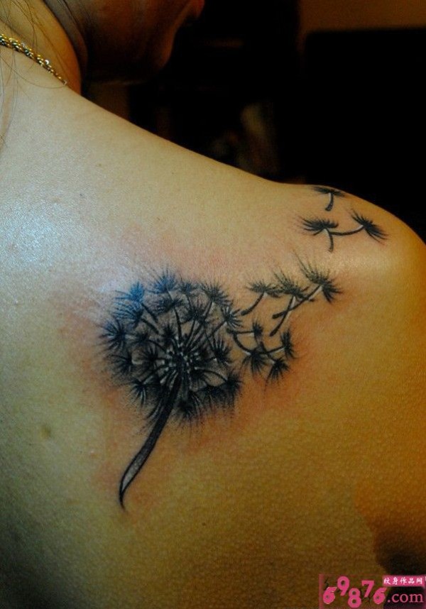 后肩飞舞的蒲公英纹身图案_肩部纹身图案大全_纹身图吧