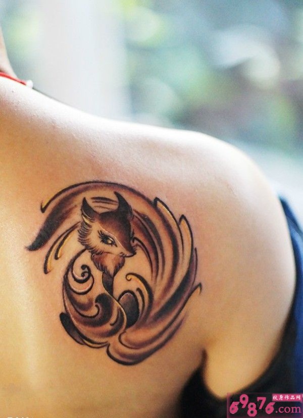 肩部云雾小狐狸纹身_肩部纹身图案大全_纹身图吧