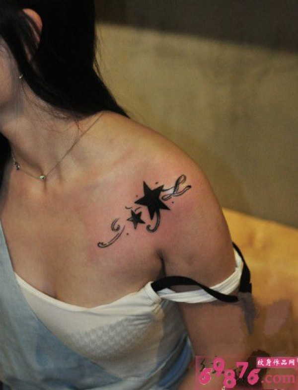 女生肩部简约小星星纹身_肩部纹身图案大全_纹身图吧