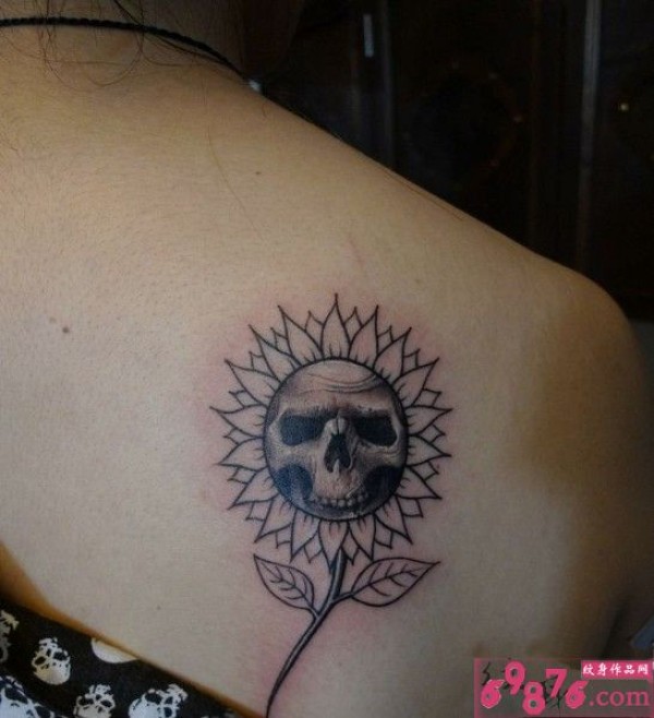 骷髅向日葵个性肩部纹身_肩部纹身图案大全_纹身图吧