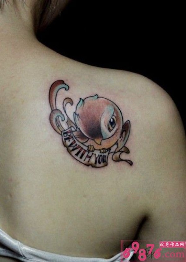 女生肩部可爱燕子刺青_肩部纹身图案大全_纹身图吧