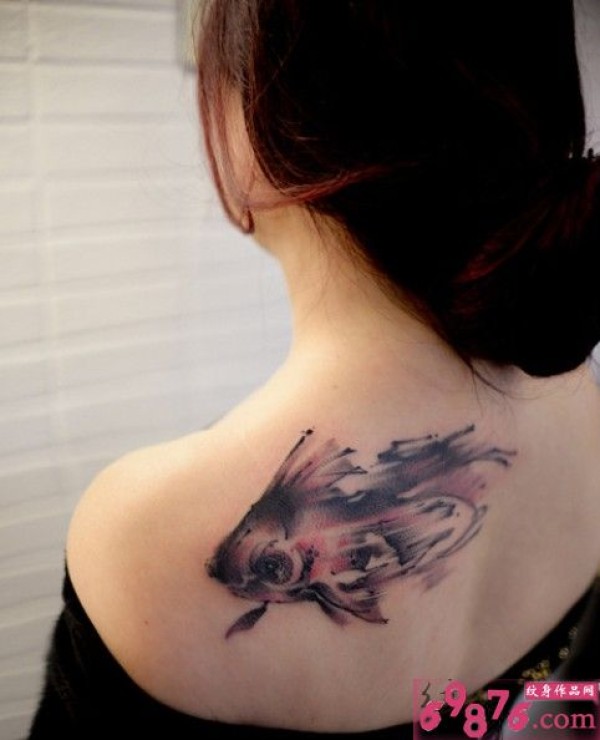 肩胛唯美水墨画小鱼刺青_肩部纹身图案大全_纹身图吧