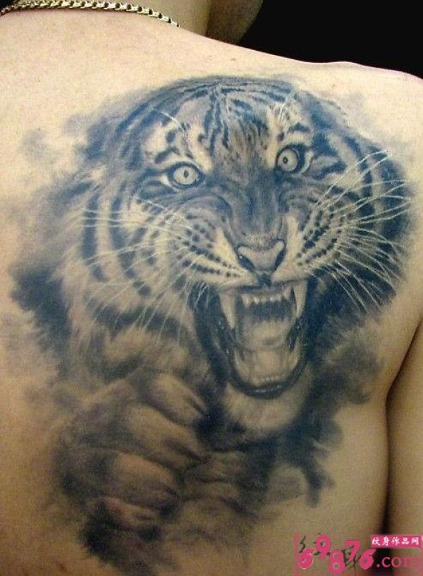 后肩创意中国水墨画老虎纹身_肩部纹身图案大全_纹身图吧